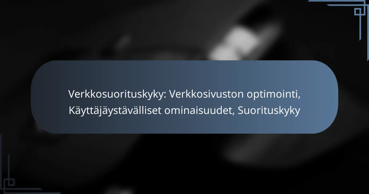Verkkosuorituskyky koostuu useista keskeisistä elementeistä, jotka vaikuttavat suoraan käyttäjäkokemukseen. Tärkeimpiä näistä ovat verkkosivuston latausnopeus, palvelimen vasteaika, responsiivisuus eri laitteilla sekä käyttäjäystävälliset ominaisuudet. Nämä tekijät yhdessä määrittävät, kuinka hyvin sivusto palvelee kävijöitään.
