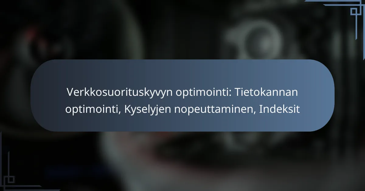 Verkkosuorituskyvyn optimoinnissa yleiset virheet voivat merkittävästi heikentää tietokannan tehokkuutta ja kyselyjen nopeutta. Tärkeimmät ongelmat liittyvät indeksointistrategioihin, kyselyjen optimointiin ja suorituskyvyn mittaamiseen.